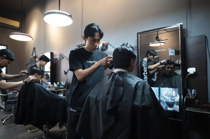 Untuk wilayah Bandung, Barberfits menawarkan layanan terintegrasi mulai dari konsultasi digital, potong rambut, keramas, penggunaan handuk hangat, hingga styling dengan harga Rp85.000. Harga tersebut sudah mencakup seluruh rangkaian perawatan tanpa biaya tambahan.