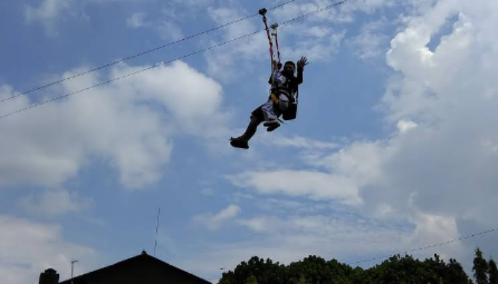 Ingin melatih keberanian si kecil? Area outbound di sini cukup lengkap. Terdapat wahana Flying Fox yang meluncur di atas area wisata, memberikan perspektif pemandangan yang berbeda. Selain itu, terdapat jembatan goyang (rope bridge) dan berbagai rintangan tali yang dirancang untuk melatih keseimbangan dan kepercayaan diri anak.